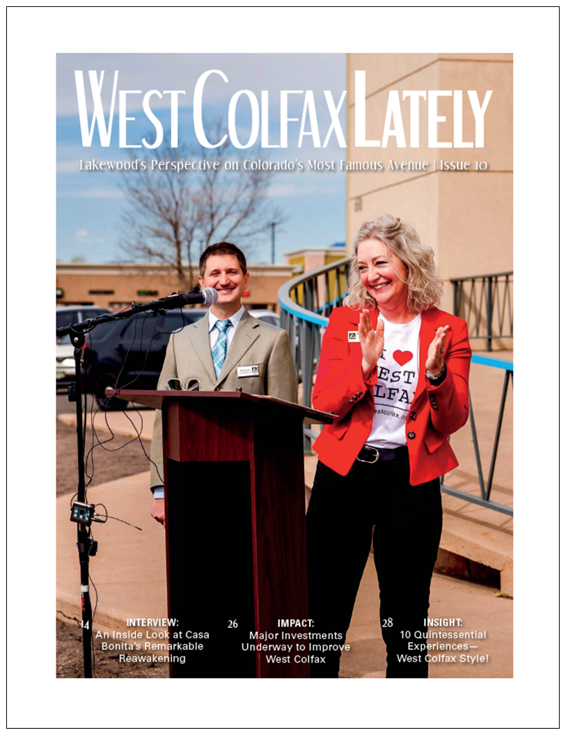 The 10th edition of West Colfax Lately is a milestone marking not just another issue, but another step forward in the evolution of our historic corridor. Progress may not always move as fast as we’d like—but every step forward is worth celebrating. West Colfax is in the midst of a significant transition—not only from the continuing growth and impact of 40 West Arts Creative District (page 26) and the inspirational reopening of Casa Bonita and its remarkable restoration (page 14), but also from major infrastructure projects (page 28) that will make this section of “Main Street Colorado” safer, more walkable, and more welcoming. This transition is underway. These are once-in-a-generation infrastructure and placemaking investments that will spark new energy, attract fresh investment, and shape the future of our community for decades to come.